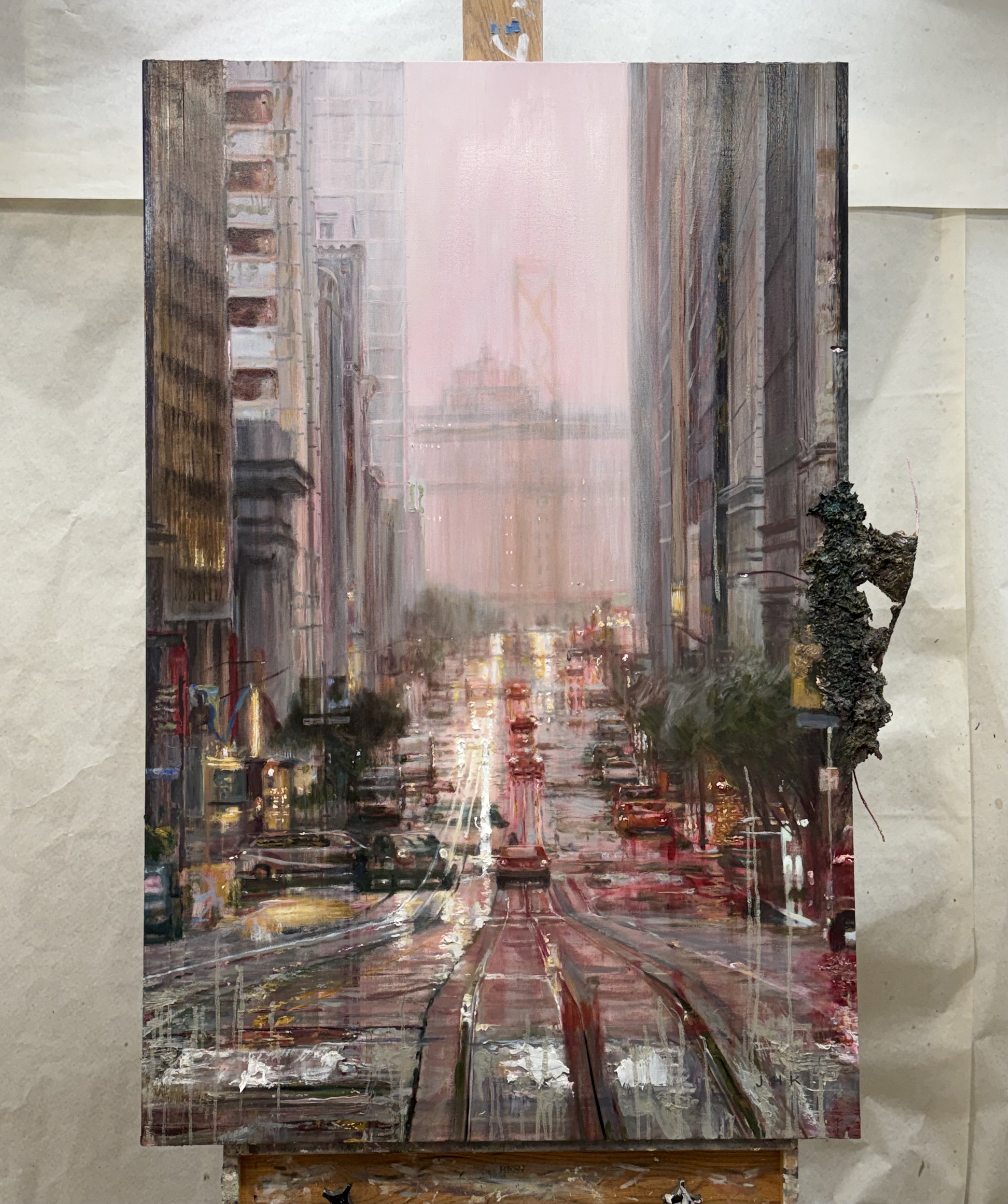 San Francisco Rain # 2 ( California St.), 60 x 43 inches, oil on cotton and wood board